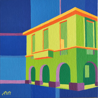 “Je mets sur la toile ce que j’ai en moi. Je suis une personne très heureuse dans mon coeur, et c’est pourquoi je mets autant de couleurs sur des bâtiments qui sont pourtant monochromes. Je place la couleur comme un souvenir de coucher de soleil sur une façade.”